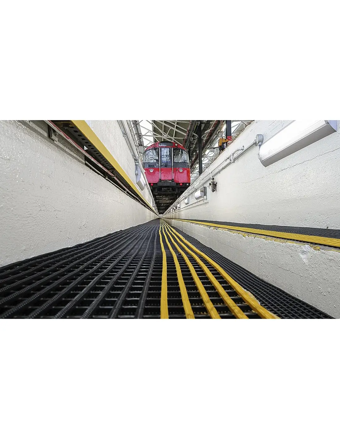 Developed for train maintenance areas, TrackGrip features a two-layer open-grid construction with extra-wide grid openings for maximum drainage capacity.