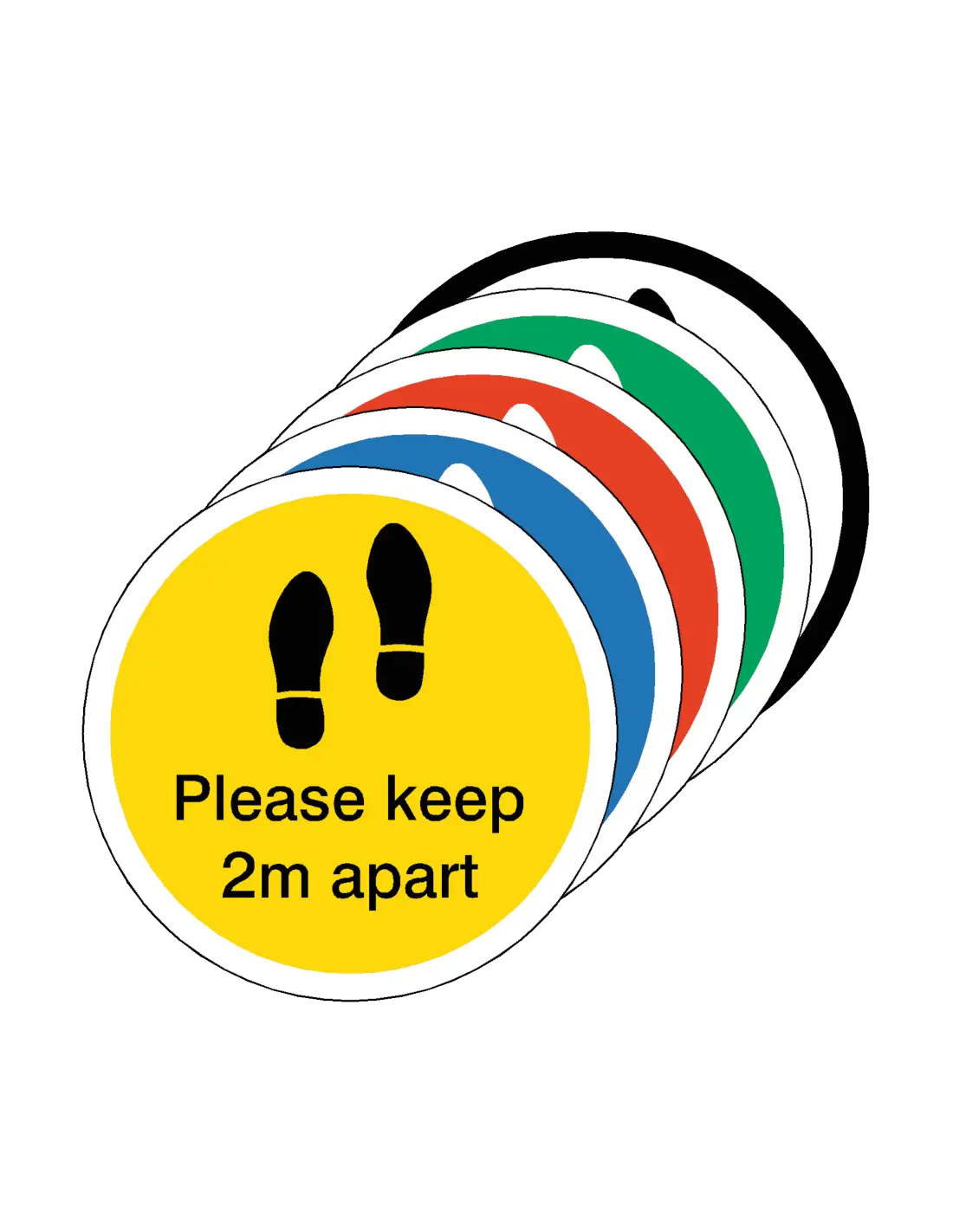 Place these social distancing floor stickers 2 meters apart in designated walkways and queuing areas to ensure everyone maintains safe social distancing.